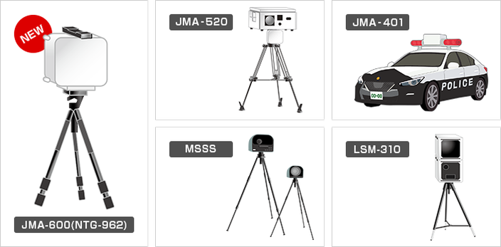 レーザー式移動取締機「LSM」や新周波数を含むレーダー波可搬式取締機「MSSS」の受信/識別はもちろん、最新のKバンドレーダー式可搬式取締機「JMA-520」、レーダーパトカー「JMA-401」の識別と警報を実現。 現在国内で稼働が確認されているすべての可搬式取締機に完全対応しました。